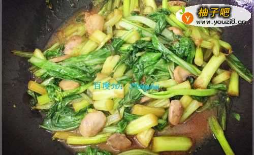 4若有较多水分,可以将油菜心稍微收拢一下,焖一会,比较容易熟;准备一些豆瓣酱。