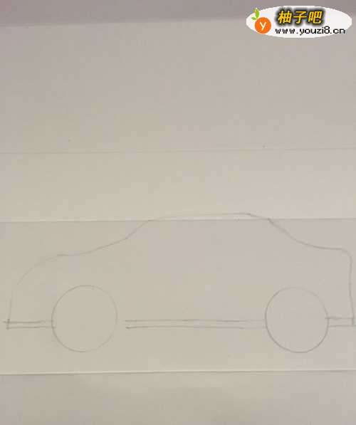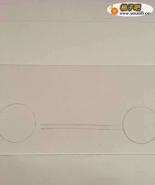 2第二步 再画上两个汽车的轮胎 相隔距离 小于两个轱辘的直径
