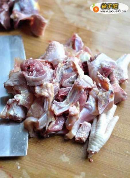 首先把鸡肉清洗干净,然后切成小块