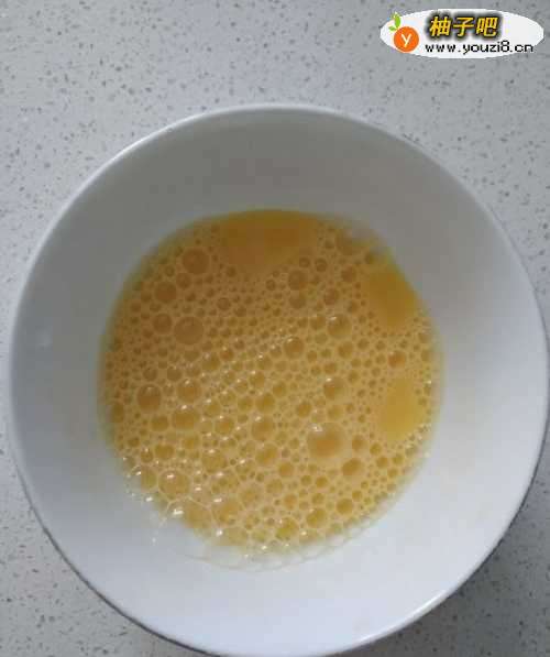 4准备一个鸡蛋,打散备用,把面包糠放盘子里准备好。