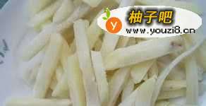 2将切好的土豆条放入开水中煮至八分熟,不易轻轻掰断即可。