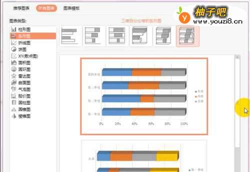 视觉设计环节主要是挑选需要的数据类型模板,选择【插入】-【图表】,插入合适的图表类型。