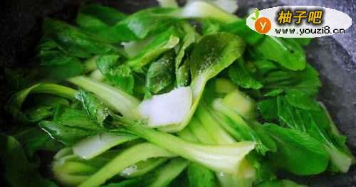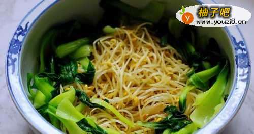 5把洗净的小油菜和黄豆芽菜进行焯水后捞出沥干水分备用。