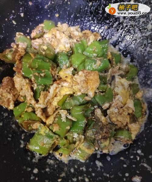 因为油多,不要担心鸡蛋和青椒会糊锅。