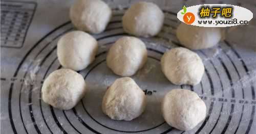 2把发酵好的面团分成九等份,盖保鲜膜醒面15分钟。