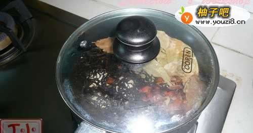 2将茶叶、桂皮、香叶、八角和鸡蛋等放入锅内,加适量的清水,再加适量的酱油。