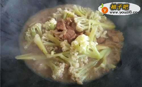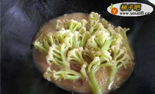 4倒入洗好的花菜。