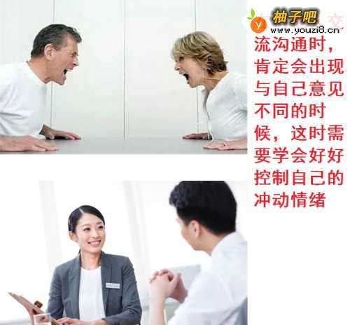 3第三,在与他人交流沟通时,肯定会出现与自己意见不同的时候,这时需要学会好好控制自己的冲动情绪,如果冲动与他人争吵个输赢,最终只会给人留下自大自负的不好印象。