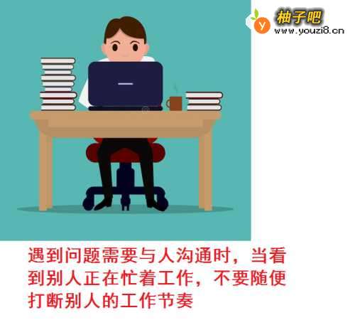 2第二,遇到问题需要与人沟通时,当看到别人正在忙着工作,不要随便打断别人的工作节奏,可以先整理记录下自己要沟通交流的问题,找适当的机会再向他人提问请教,虚心能让人进步,也会获得好人缘。