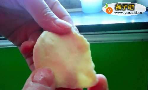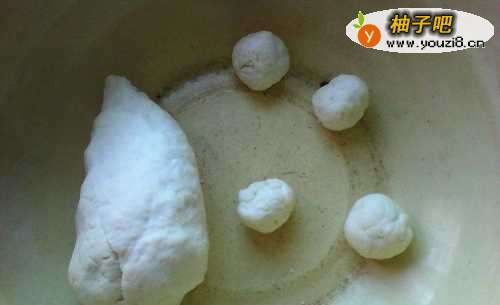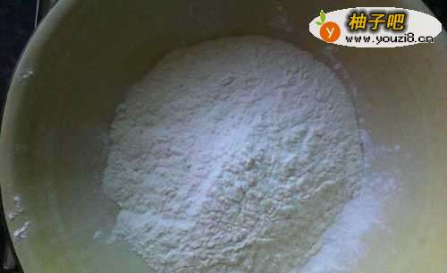 2面粉里,加入适量水,合成不稀不硬的面团;