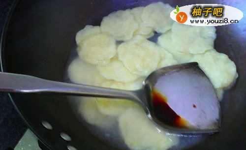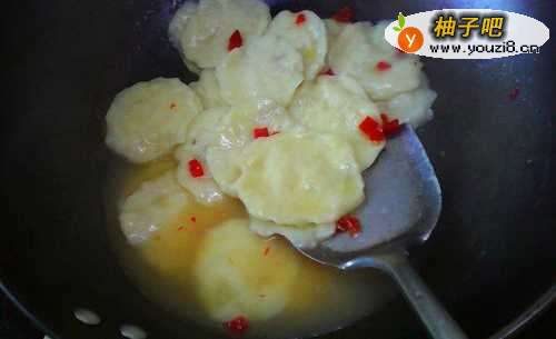 6做好后,全部投入煮沸的开水中,翻匀一下;