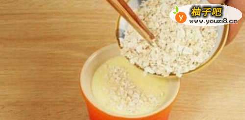 5加入燕麦片,轻轻搅拌,混合均匀;