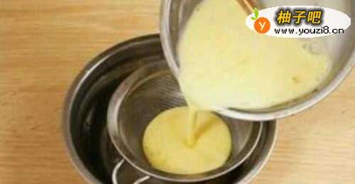 3用细筛将蛋液过筛;