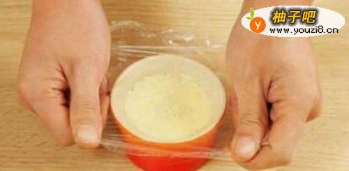 6蒸锅中加水煮开,用保鲜膜将碗盖好放入锅中蒸15分钟至凝固状态即可;