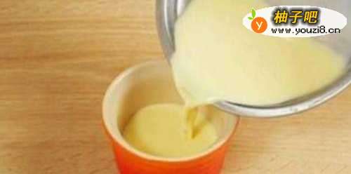 4将滤过的蛋液倒入碗中;