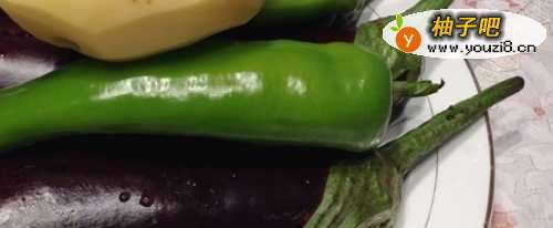 2将茄子土豆辣椒切成大小一致的滚刀块