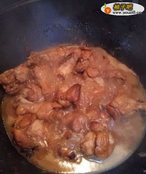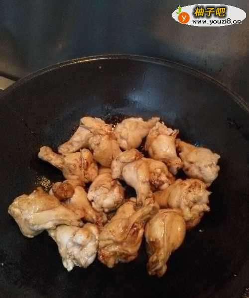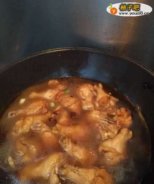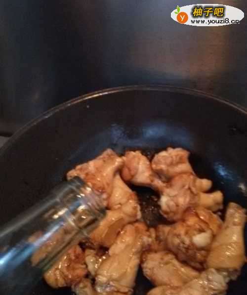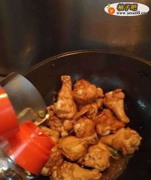 7再往锅中放入适量的酱油,增加翅根的色泽。