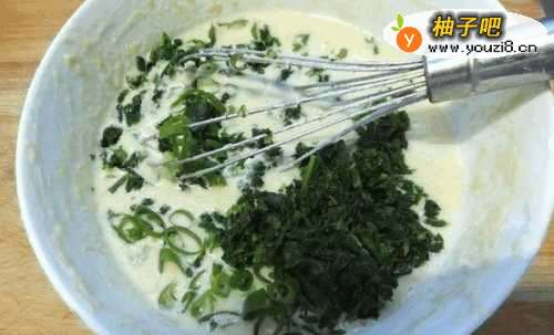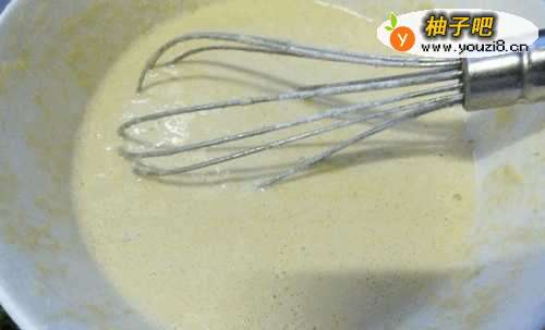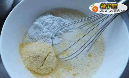 5蛋液加玉米面和面粉混合均匀成糊状。