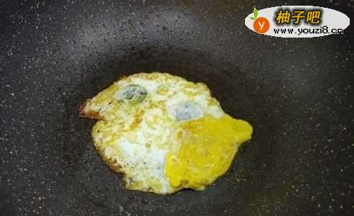 起锅烧热,放少许食用油,打入鸡蛋煎至两面金黄取出。
