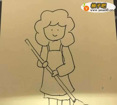 2绘制出拖把的柄、妈妈的衣服、妈妈的手臂等,完成线稿。