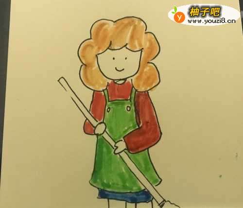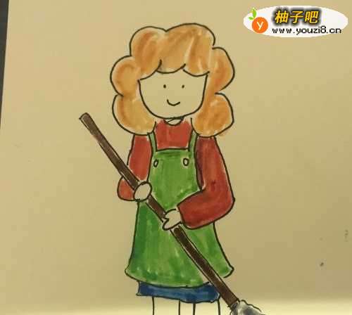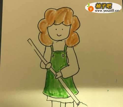 5最后就是拖把上色,然后画面全部加深,绘制细节。完成最终的绘制。