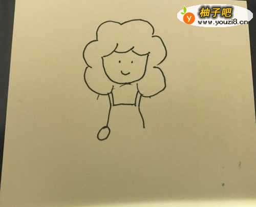 首先我们绘制妈妈他头发、脸、五官等,画出一部分的围兜。