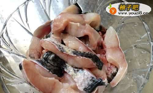 首先将黑鱼切成块洗干净后到如50克面粉搅拌均匀备用!