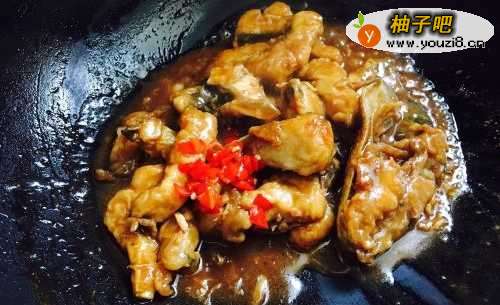 6鱼块倒进锅里之后不需要翻炒,直接将提前调好的酱汁倒进去,加入半碗水,开大火烧开!