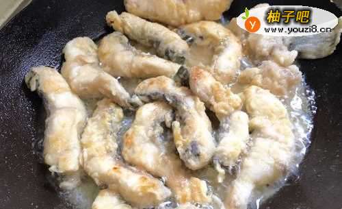4带鱼块两面都炸成金黄色即可捞出来放在盘子里备用。