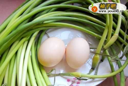 1,准备好食材蒜苔和鸡蛋。