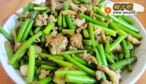 蒜苔含有糖类、粗纤维、胡萝卜素、维生素A、维生素B2、维生素C、尼克酸、钙、磷、等成分,其中含有的粗纤维,可预防便秘。蒜苔中含有丰富的维生素C具有明显的降血脂及预防冠心病和动脉硬化的作用,并可防止血栓的形成。它能保护肝脏,诱导肝细胞脱毒酶的活性,可以阻断亚硝胺致癌物质的合成,从而预防癌症的发生。下面小编为大家介绍一下如何烹饪家常菜蒜苔炒鸡蛋。