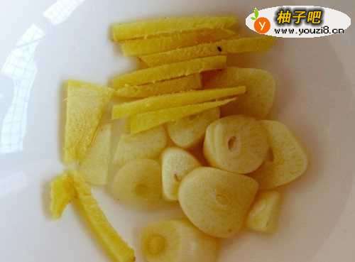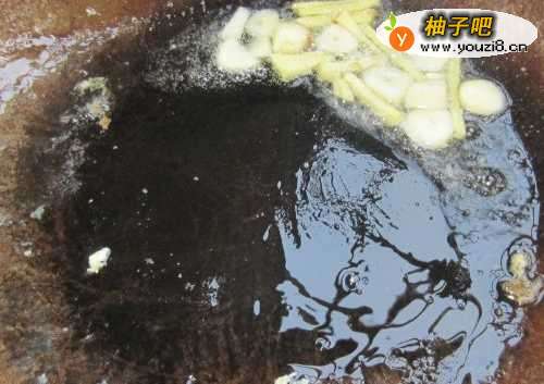 88,在锅中放入适量食用油,放入准备好的姜和蒜在锅中爆香。