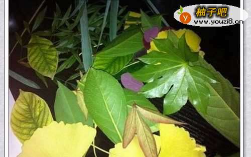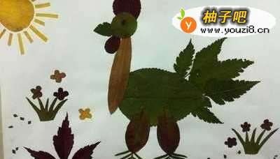 2粘贴前先选择适合画面需要的树叶,在树叶的背面涂上胶水按照先后次序,放到预先设计好的位置上去。在上面蒙上一层薄纸后渐渐地展平树叶,等胶水干透就可以了