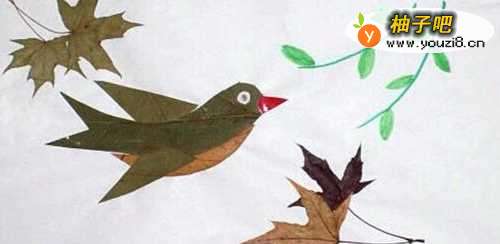 创意树叶贴画教程