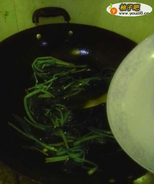 4然后炒20秒钟左右,放少量的盐,如下图所示。