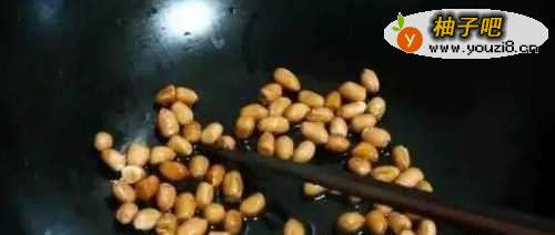 凉锅凉油,小火炸花生豆。变色后出锅,撒少许盐拌匀。