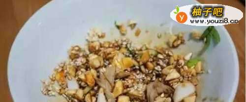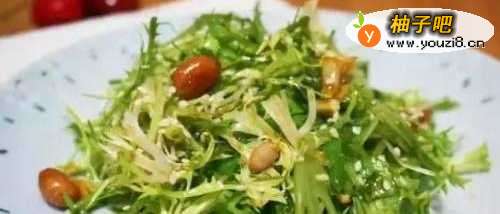 4将汁倒入苦菊中拌匀,再放入花生豆拌匀。