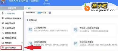 2在主界面,点击左侧菜单栏的【退付手续费核对】;