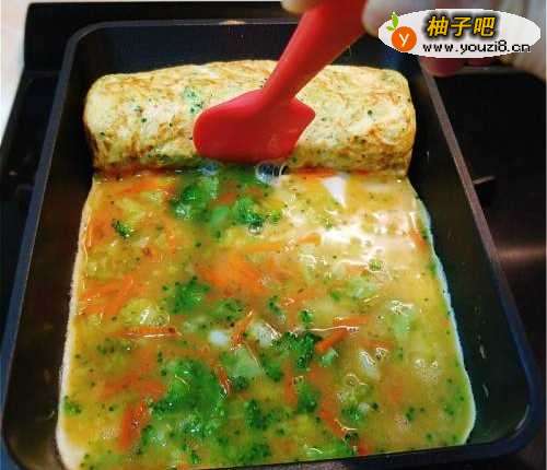 玉子烧加入西兰花和甘笋丝,不但口感丰富,颜色悦目,入口松软,大人小孩都爱吃。