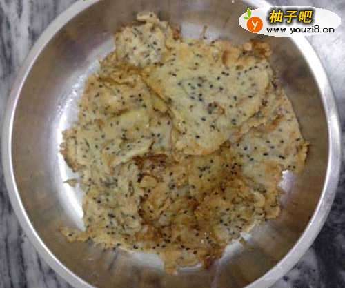 5一直搅拌成迷糊,再撒上芝麻就可以去煎了。