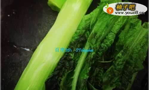 准备一棵莴笋,茎叶分开,然后放入水中仔细清洗干净。