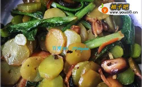 今天这里介绍一道比较入味的家常素菜--莴笋炒香菇,做法也比较简单,先处理莴笋,茎叶分开,茎去外皮留下中间脆嫩肉质,切成薄片状,叶洗净切成小段;香菇洗净切薄片,二者混合翻炒一阵,加入各种调味料调匀即可。