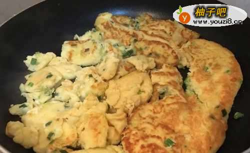 土豆跟鸡蛋一起,煎成饼,再加少许葱花,简单又好吃。