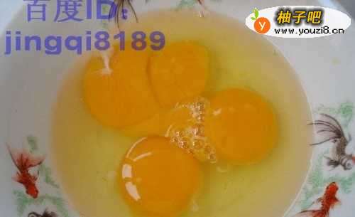 3把鸡蛋打到碗内,用筷子把蛋黄和蛋清打匀。