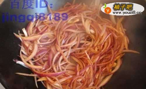 5锅里重新放油,烧热,放入洋葱丝,再加入花椒粉、酱油翻炒。调料可以根据自己口味更换。