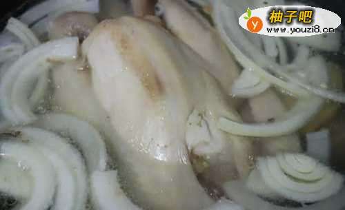 2先将土鸡以开水烫过,再注入新水先闷煮约分钟。