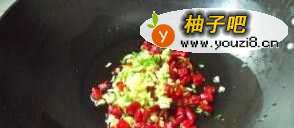 5炒锅放油,爆香葱、姜、八角、干辣椒。