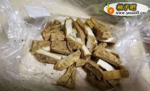 4再放入香干,接着翻炒,这个时候放点食盐进去。