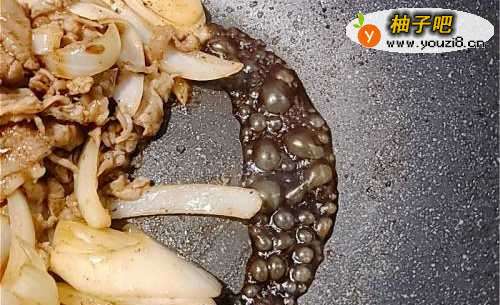 6将1汤匙生抽在锅边让它焦香,再混合材料兜炒。