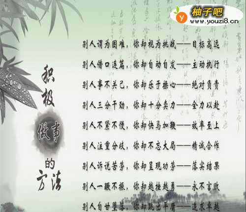 如果你此时正为处于情绪低谷而悲哀,如果你还为自己胆小卑怯而烦恼,那么你不如将这些恼怒的性格丢到一旁,从新培养自己积极的心态。那么怎样培养积极的心态呢?